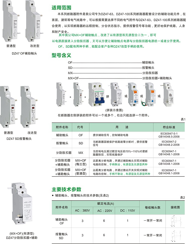 (MX+OF)(梅兰无缘型)DZ47分励脱扣器+辅助